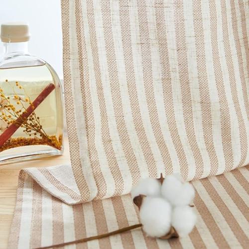 Ongeopend, set van 2 , TOPICK Linnen gordijnen gestreepte gordijnen met oogjes , beige linnenlook , half transparant , 130x145 bruin op beige , B09V53WQ2S