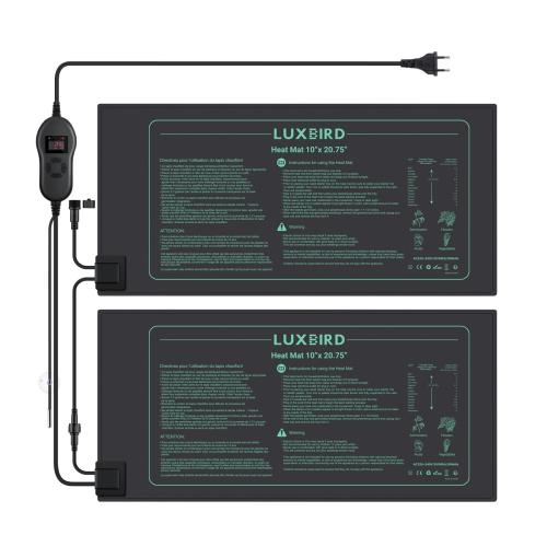 Minieme gebruikssporen, getest en werkend, volledig, ok, LUXBIRD Zaailing Verwarmingsmat met Thermostaat, 2 Verwarmingsmatten met 1 Regelaar, Eén-op-veel Regeling, 30 Watt, IP67 Waterdicht, Duurzaam PVC Oppervlak, 52.7 * 25.4cm,B0BS5NCZ9Z