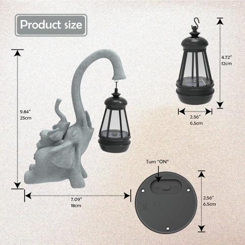 Ongeopend, mikilov Hars Beeld Olifant met Lantaarn op zonne-energie (back L 25cm decoratie olifant grijs, B0DQNCHZ9K