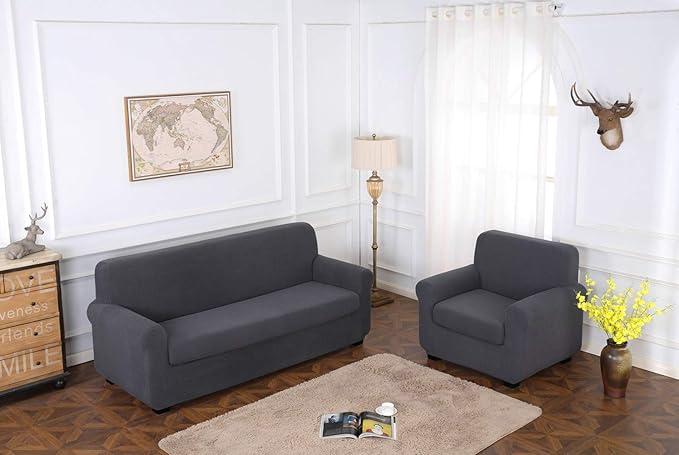 Ongeopend, ok, TIANSHU Sofahoezen+Kussenhoes,Bankhoes 3-Zits, twee stukken (2-zits+ 1-zit),Meubelbeschermer,Stretch Sofahoezen,Bankhoezen,Tweezits Bankhoes Meubelhoes voor bankJacquard Bankhoes(3-Zits, Grijs)