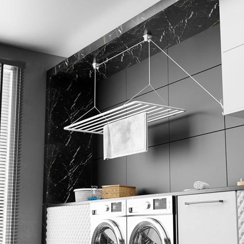 Minieme gebruikssporen, volledig, ok, Eric Plafond Kledinghanger 70x50cm, 5,6m Droogoppervlak, 2,5m Mini Verticaal Opvouwbare Kleding Droger, Metaal met Pvc-Vrije Plastic Coating, Witte Hangende Droger,B07K8TC48L