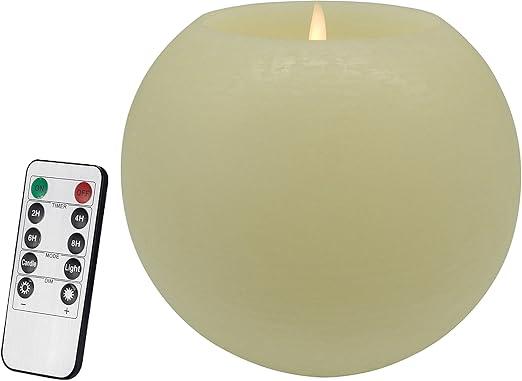 Ongeopend, ok, CVHOMEDECO. Moon Sphere Wax LED Dancing Flame Candle, Batterij Operated Wax LED Vlamloze Kaars met Timer en Afstandsbediening, Dia. 6 x H 5 Inch, Crème , B07B3VWHQ4