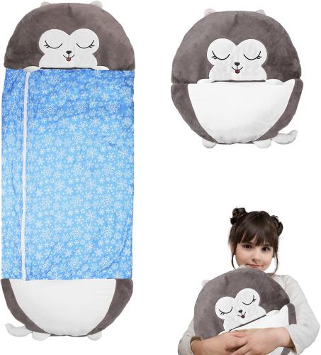 Ongeopend, LUFEEMGA Slaapzak voor kinderen, 2-in-1, opvouwbaar, diermotief, zachte knuffeldier, met kussen, speelgoedslaapzak voor jongens en meisjes, cadeau, Husky, maat M, B0C89SPLY5