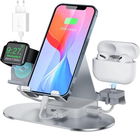 Ongeopend, ok. Oplaadstation voor Apple Watch en iPhone, 3-in-1 oplaadstation van aluminiumlegering voor Apple Watch 8/7/6/5/4/3/2, iPhone 14/13/12/11 Pro Max/XS/XR/8 Plus, AirPods Pro, 3 in 1 oplader met QC3.0-adapter, B0BVQNWSXG