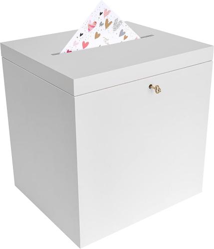 Ongebruikt, ok, 1 sleutel. Creative Deco Afsluitbare Bruiloft Houten Doos voor Kaarten Wit | 29 x 25 x 30 cm | Onvoltooide Houderskist | Met Deksel | Houten Opbergvakje Sieraden, B0C1GVMD1D
