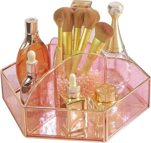 Ongeopend, in seal, AIMIAO Make-up cosmetica-organizer van roze zeepbellenglas, 360° draaibaar, cosmetica-opbergdoos, make-upkwastenhouder, kaptafelorganizer voor slaapkamer, badkamer, B0CFZJ2GYL