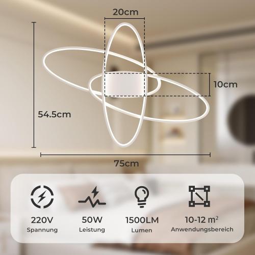Ongeopend, homwarmy Led-plafondlamp, plafondlampen met afstandsbediening, 50 W, Wit, moderne plafondlamp voor woonkamer, 54 cm, keuken, plafondlamp, dimbaar B0DBQDS5C7