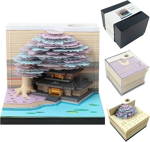 Ongeopend, 3D-kalender afscheuren, 2025, 2025, tafelkalender, notitieblok met licht, 2025 tafelkalender, notitieblok, creatieve magische boom, zelfklevende notities, doe-het-zelf desktopornament voor school, B0DNQ53198