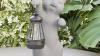 Ongeopend, mikilov Hars Beeld Kat met Lantaarn op zonne-energie (Hand L 40cm decoratie kat olifantgrijs, B0DQNB994C