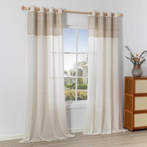 Ongeopend, MYSKY HOME Gordijnen linnenlook gordijnen woonkamer gordijn met plooiband halftransparant gordijn set van 2 natuurlijke stijl gordijn half-transparant linnen gordijnen, H 280 x B 140 cm, linnen kleur, B0CLTYBDRT