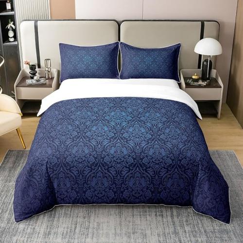 Ongeopend, in seal, Homewish 100% natuurlijk katoen, indigo ombre floral dekbedovertrek 135 x 200 cm, boho paisley damast beddengoed set vintage Victoriaanse barok bloem trooster overtrek voor volwassenen vrouwen bohemian, B0CCP2CB8R