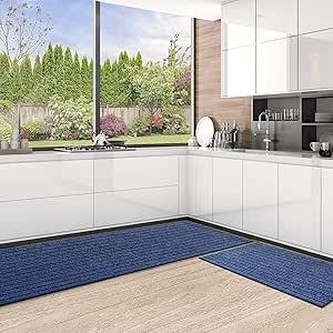 Ongeopend, Color&Geometry Keukenloper, 2-delig, keukentapijt, wasbaar, antislip, tapijt, keuken met rubberen rug, keukenmat absorberend, (44 x 75 cm + 44 x 200 cm, blauw) B08RC1WZQ5
