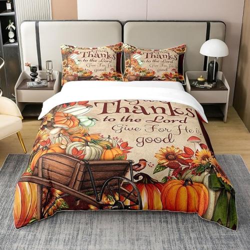 Ongeopend, in seal, Homewish 100% katoen, Thanksgiving beddengoedset, herfst, pompoen, zonnebloemen, dekbedovertrek, 155 x 220, herfstoogst, troosterafdekking voor boer, gelukkig Thanksgiving bedset, B0CGR4L8XB