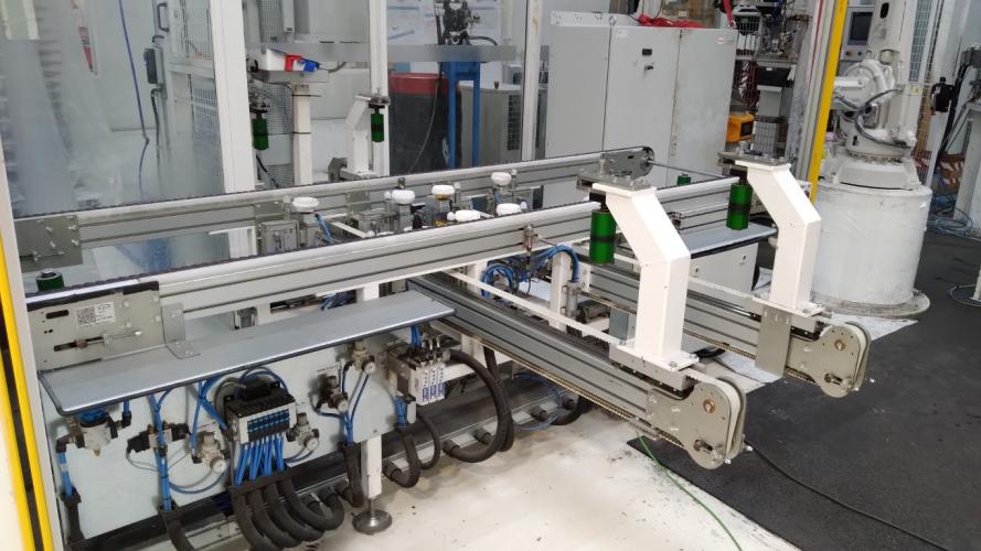 CENTERING BELT CONVEYOR WITH POP UP TABLE 3000