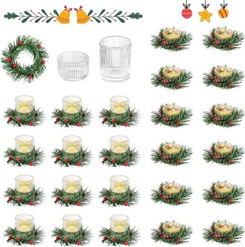 Ongeopend, in seal, Glasseam Votief Kaarshouders Met Kerstmis Kaarsenringen: Kleine Theelicht Bulk 24, Geribbelde Glazen Met Adventskrans, Decoratieve Voor Tafelmiddenstuk, B0CJF1CYN5
