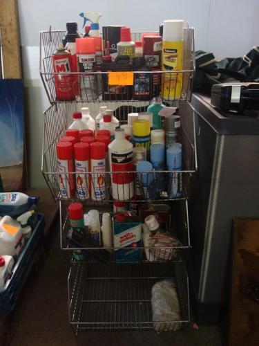 Rek met onderhoudsproducten voor huis en auto