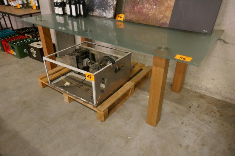 Eetkamertafel met 4 houten poten en glazen bovenblad - modern