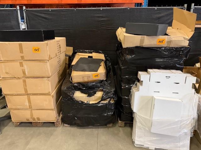 3 palletten met kartonnen verpakking : plooibare dozen - postboxen - papier envloppes