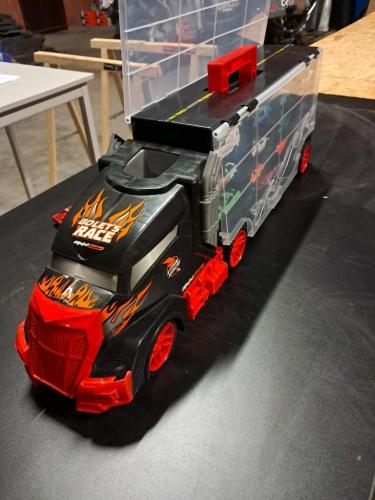 Grote vrachtwagen met opberg voor auto's (bijhorende auto's)
