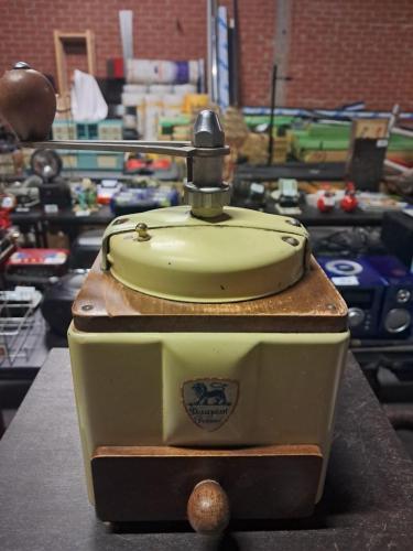 Antieke koffiemolen Peugeot werkende staat