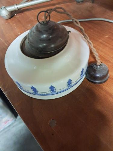 Oude glazenhanglamp koperen voet Ø 200mm