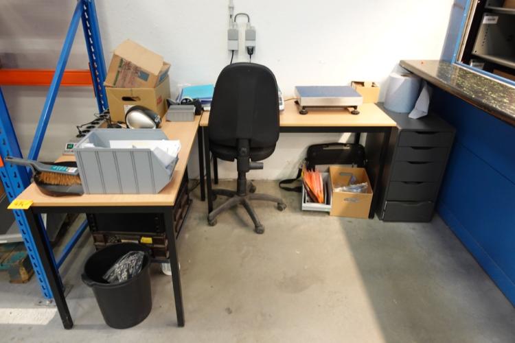 oa: 2x tafel, weegschaal,verrijdbare kar,..