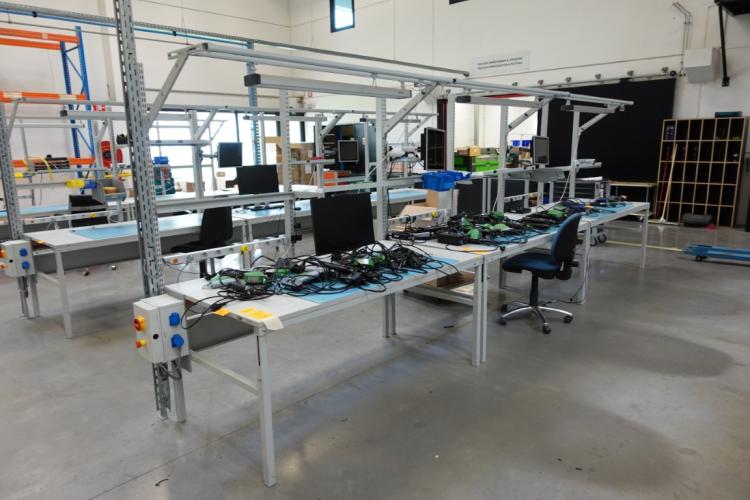 1800x900 in hoogte verstelbaar, inclusief de houder met verlichting en stopcontacten, bureaustoelen,...)