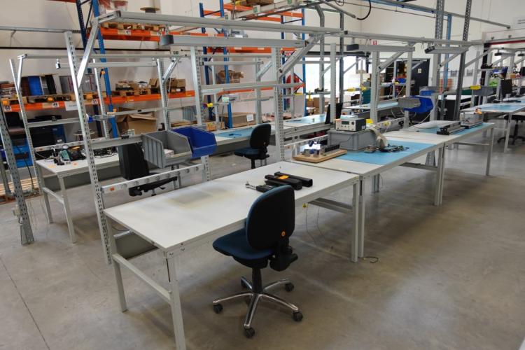 1800x900 in hoogte verstelbaar, inclusief de houder met verlichting en stopcontacten, bureaustoelen,...)