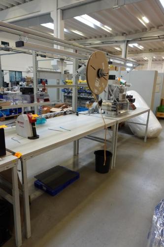 1800x900 in hoogte verstelbaar, inclusief de houder met verlichting en stopcontacten, bureaustoelen,...)