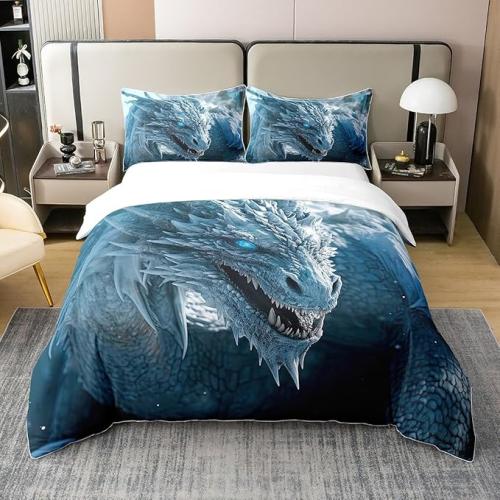 Ongeopend, in seal, Homewish 100% Katoen, IJsdraak Dekbedovertrek, Blauw Draak Dekbedovertrek 220x240, Dragon Lovers Beddengoed Set voor Meisjes Kinderen Jongens, Beddengoed Set 3D Draak Print, B0CWXZ4428