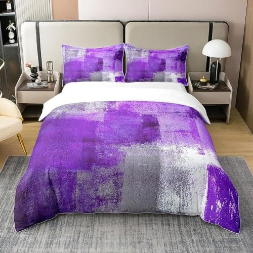 Ongeopend, in seal, Homewish Olieverf 100% Katoen Dekbedovertrek Meisje Paars Grijs Beddengoed Aquarel Schaduw Comforter Dekbedovertrek Moderne Abstracte Kunst Bedset met 2 Kussenslopen Slaapkamer Decor 220x240, B0CV3P7KLS
