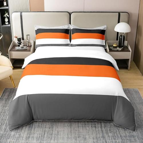 Ongeopend, in seal, Homewish 100% Katoen, dekbedovertrek 240 x 260 Oranje Grijs Zwart, Geometrische Streep Patchwork Beddengoed, Lichtgrijs Wit Gestreept Dekbedovertrek voor Kinderen Volwassenen, Modern, B0CRKTVFX6
