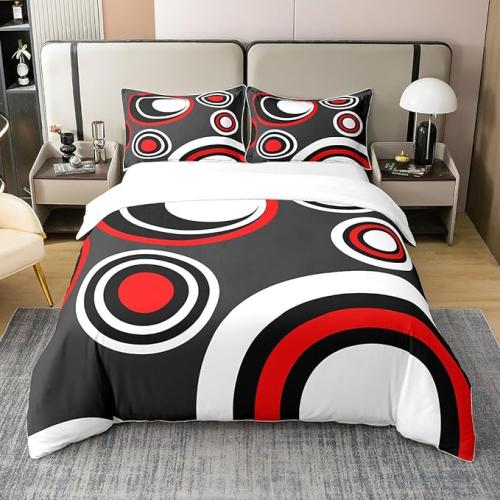 Ongeopend, in seal, Homewish 100% Katoen, dekbedovertrek 240x260 Geometrische Wirbelvorm, Zwart Wit Rood Cirkels Beddengoed Set, Beddengoed Set Klassieke Geometrische Patroon, Abstracte Kunst Stippen, B0CT32XF77