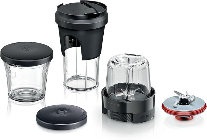 Ongebruikt, glazen potje ontbreekt (zie foto's), Bosch Accessoires MUZS68TM, Multi-hakmolenset, kruiden-/kruidenmolen, universele hakmolen, mixer, opbergoplossing, ToGo-deksel, voor keukenmachine serie 6, serie 8, zwart, B0CV5XBGP3