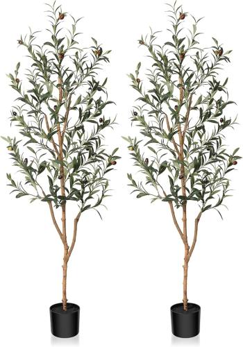 Ongebruikt, ok, Kazeila Kunstolijfboom, 150 cm grote kunstplant voor binnen met fruit, olijfplant van imitatiezijde in pot voor woondecoratie (2 stuks),B0BKRF1RYC