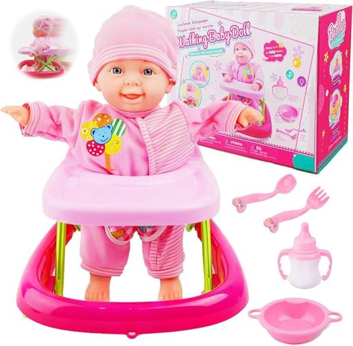 Ongeopend, in seal, Pop- en loopset, lerende babypoppen, zacht lichaam, beweegbare en lopende pop, babypop met loopwagen en accessoires, B0DBT2RKPD
