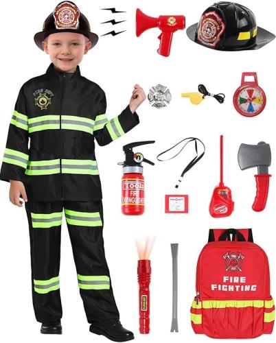 Ongebruikt, volledig, ok, Brandweermankostuum voor kinderen, brandweerkostuum, set met brandweerspeelgoed, brandweerhelm, brandweerkok, cosplay voor kinderen, jongens, meisjes, carnaval, Halloween, 9-10 jaar, G081XL, B0DN9XM69R