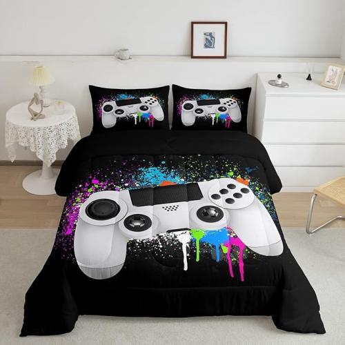 Ongeopend, ok, Gamer Dekbedovertrek Gamepad Donzen Trooster voor Jongens Meisjes Kinderen Moderne Nieuwigheid Witte Video Game Controller Down Dekbed Tieners Kleurrijke Tie Dye Dekbedovertrek Set Zwart Quilt, B098DZB1TD