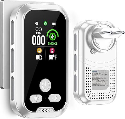 Ongeopend, Gedsffati Plug-in 4in1 Rookmelder koolmonoxide detector combinatie, met 2000mAh batterij en HD 2.1‘’ beeldscherm [CO rooktemperatuur vochtigheids monitor] plug and play, geschikt voor thuis, wit , B0DL3MKMBH