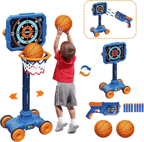 KalaDuck 2 In 1Basketbal en schietspel, bewegende basis, hoogteverstelbaar tot 98cm, incl basketballen en soft-pistool, B0D6FGMCN1