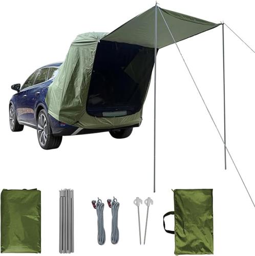 Minieme gebruikssporen, volledig, ok, verpakking ontbreekt, TAZZOR Achtertent voor auto met muggennet, winddicht, zonwering en waterdicht, autotent achterklep, voortent auto voor SUV, luifel auto voor camping en outdoor avonturen (groen), B0CTJMKQ52