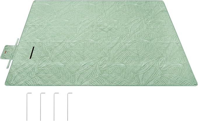 Ongebruikt, ok, SONGMICS picknickdeken, 300 x 200 cm, grote kampeerdeken, voor park, tuin, strand, waterdicht, machinewasbaar, opvouwbaar, mintgroen met tropische varen GCM310C03,B0CJHWGKFF
