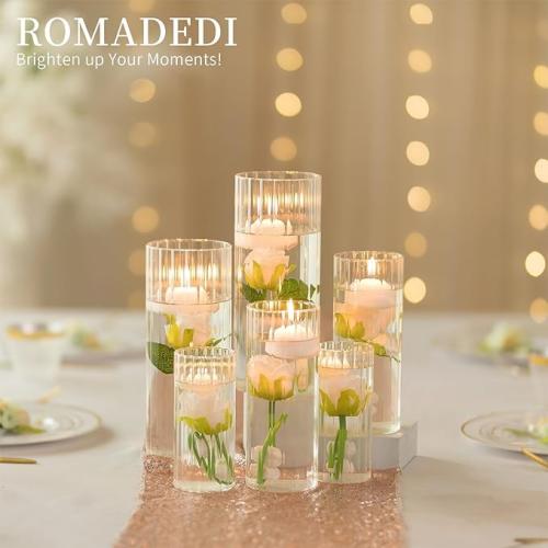 Ongeopend, in seal, Romadedi decoratieve vaas, Glazen vaas met bodem, windlicht, glas, set van 3, voor bloemen, kaarsenhouder, windlichten voor stompkaarsen, drijvende kaarsen, tafeldecoratie, vazen, cilindervazen voor, 18 stuks, B0C9GVB68K