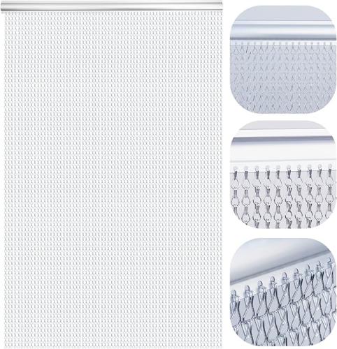 Ongebruikt, ok, Lymmiytc Kettinggordijn Deurschermen 90 x 200cm Aluminium Kettinggordijn voor Deuropeningen Decoratie, Metalen Vliegenhorren Insectengordijnen Ongediertebestrijding (Zilver), B09QC31FHN