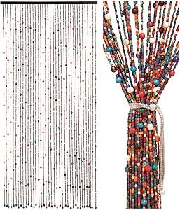Minieme gebruikssporen, ok, licht beschadigde verpakking, Ezcasch Kralengordijn, 90 x 200 cm, deurgordijn als decoratie en insectenbescherming, 38 strengen, Boheemse stijl, bamboegordijn, handwerk, van bamboe en houten kralen voor raam/kamer, B0CXS6HVKJ