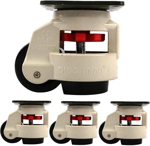Ongeopend, doos beschadigd, ybaymy 4 stuks nivelleringsmachinerollen 80F intrekbare nivellerrolplaat met nylon wiel en rubberen voet voor zware werkbanken, apparaten, meubels, B09TFCJ931