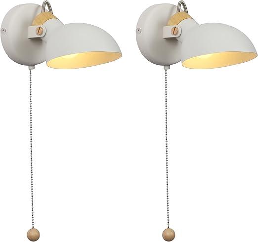 Ongeopend, Aisilan Set van 2 wandlampen met trekschakelaar, wit, E14, vintage wandlamp met schakelaar, draaibaar, hout en metaal, retro industriële wandlamp met gloeilamp, B0BJDLWTPT