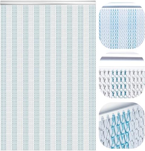 Gebruikssporen, volledig, ok, Lymmiytc Kettinggordijn Deurschermen 90 x 200cm Aluminium Kettinggordijn voor Deuropeningen Decoratie, Metalen Vliegenhorren Insectengordijnen Ongediertebestrijding (Blauw & Zilver), B09QBXDQQH