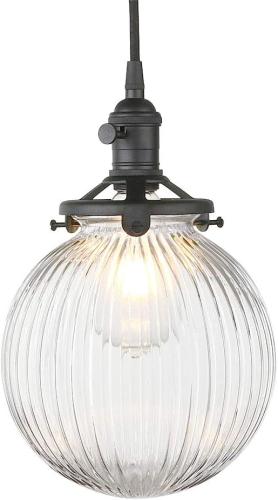 Ongebruikt, getest en werkend, ok, Yosoan Hanglamp, geribbeld, helder glas, plafondlamp, hanglamp, loft, kroonluchter, industriële loft, hanglamp, binnenlamp voor keuken/eetkamer/slaapkamer/café/bar/club (zwart) , B010I1K9M4