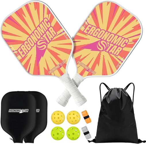 Ongeopend, ok, Ergonomicstar Pickleball racketset, glasvezel pickleball racket met 4 ballen en draagtas, peddelbescherming, lichte pick-up rackets voor beginners, binnen en buiten, B0F9DLJPM9